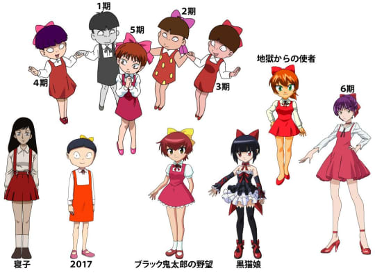 ゲゲゲの鬼太郎6期では、急に大人びた8頭身になった猫娘。
