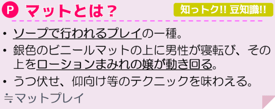 マットが好きなのでソープに行きますね~!