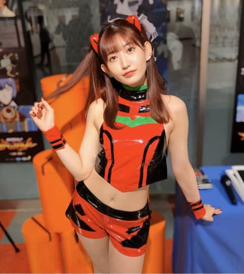 こちらはアスカのプラグスーツを大胆にアレンジした、かなりセクシーなものになっています!この方はミスFLASH2017グランプリを獲得し、グラビアアイドルユニットもやっていた月城まゆさんです。