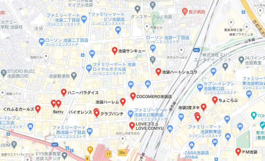 池袋の風俗エリアは、横浜や五反田のように一箇所に集中しているのではなく、東池袋、西池袋と点在しています。ピンサロも一箇所に固まるのではなく、分散して位置しています。