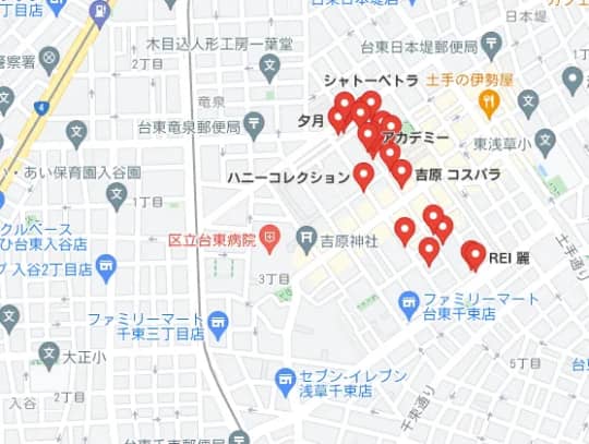 最寄り駅からは距離が離れていますが、残念ながら吉原信長からは無料送迎は行っていません。三ノ輪駅もしくは、入谷駅から徒歩14分ほどの所に吉原信長が店を構えています。