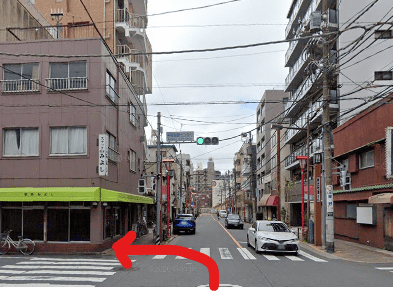 京町通りの交差点を左に曲がり、京町通を進みます。