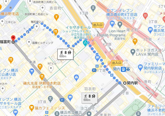 今回ご紹介する横浜中区・福富町とは、JR京浜東北線・関内駅から徒歩8分ほどのところにあります。