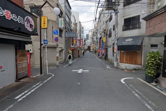 こちらは2つ目の十字路で、左側に立ち呑み処「小町」が見えるのでここも真っすぐ進んでください。