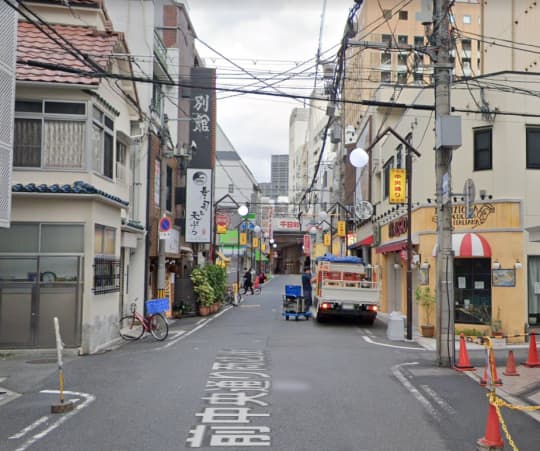 こちら3本目の十字路になります。画像左に「別館」と見えますが、目的地「難波秘密倶楽部」の別館になり、その看板を越えてすぐの4本目の十字路を左に曲がると間もなくです。
