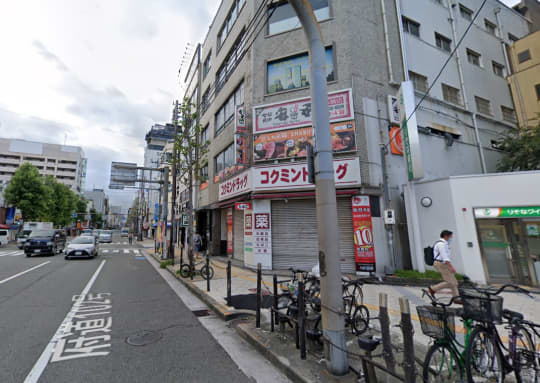 「5番出口」をそのまま真っすぐ進み、1つめの横断歩道が見えるところで右に曲がります。