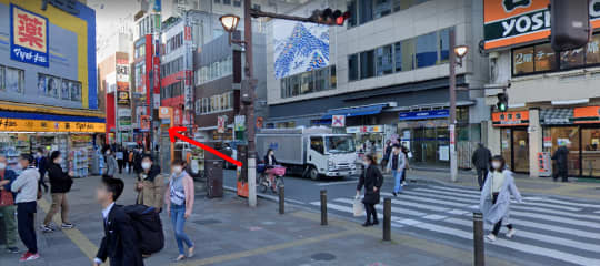 このアングルから、左側にマツモトキヨシ、右側に吉野家があるのを確認できますか?