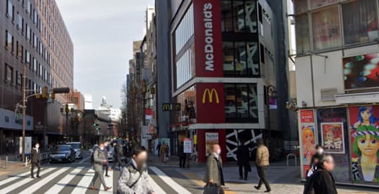 「マクドナルド」を左手に歩いて行きます。細い道の方ですね!