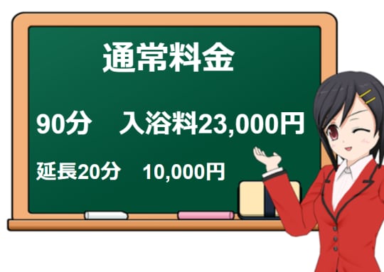 バルボラの入浴料は90分23,000円。延長は20分10,000円で可能です。この他に在籍嬢のランクによって異なるサービス料を支払うことになり、総額は63,000~72,000円ほどになります。