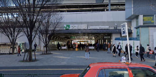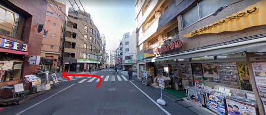 まず、北口を出たら北西方面へ直進です。