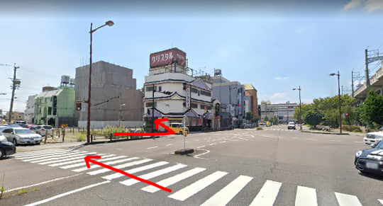 目印はバースデーの建物の一番上に「クリスタル」と書かれたデカデカとした大きな看板がありますよ!