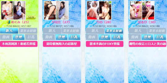 お店のコンセプトが素人奥様ということもあって、ルックスにバラツキがあります。ですが、一般的にはキレイだと思える女性ばかりが在籍しています。テクニックは高めで、人妻で熟女が多いことからサービス精神旺盛です。