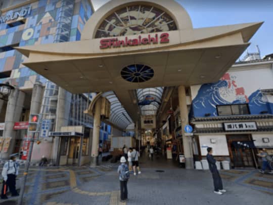 阪神電気鉄道・阪急電鉄・神戸電鉄の「新開地駅」で降りて、画像左奥にある3番の出口を目指して歩いてきてください。