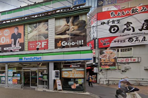 ファミリーマートと日高屋の間の道に入り、直進します。