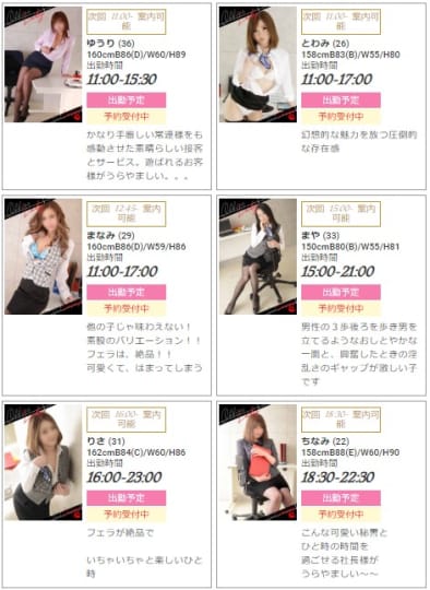 BAD COMPANYはOL系イメクラなので、女の子の年齢層は20代前半から30代前半です。このお姉さん系の年代であればリアルなOLイメージプレイができるでしょう♪