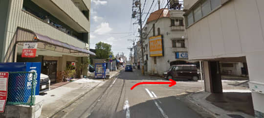 次は、左にコインパーキングがあるので、ここを左へ曲がります。