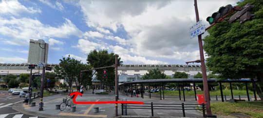 岐阜駅を出たら線路沿いを歩くように、矢印方面へ直進します。