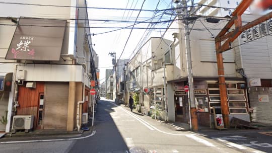 先程のビルの切れ目の路地が見えますので、そこを左に曲がって、ひたすら真っすぐ進んでください。