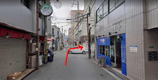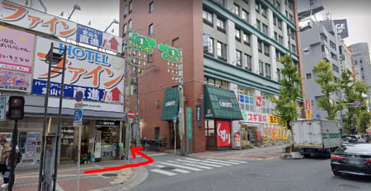 「パークアベニュー・堂山」と書いてあるところを左へ曲がりますよ!