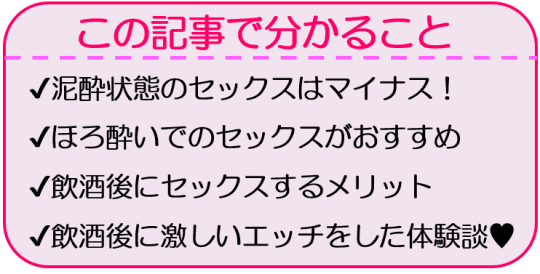 ほどよくお酒を飲めば、むしろ飲酒後のセックスはメリットで溢れているんですよ♡