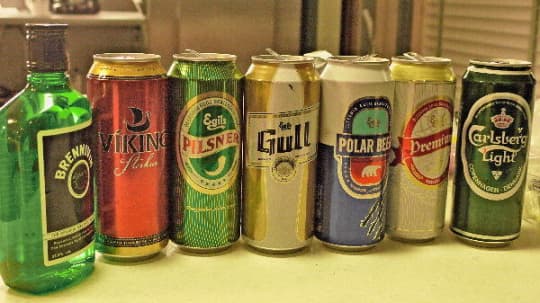 アイスランド独自のお酒、ブレンニヴィン。写真では、一番左の緑色の便になります。寒い国らしく、アルコール度数が40%と高め。