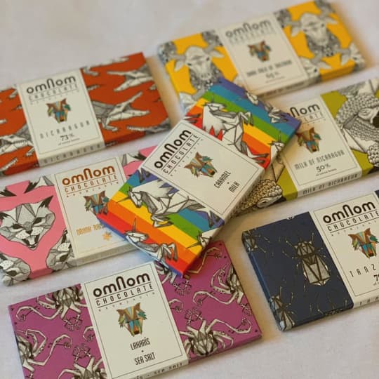 OmNomというのは、英語で「むしゃむしゃ」という意味の言葉。おいしいチョコレートをむしゃむしゃとほおばって、幸せなひと時を過ごしてほしいという名前なのでしょう。