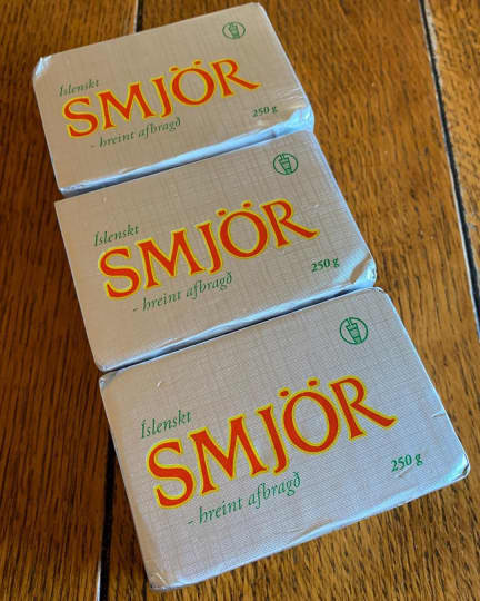 アイスランドは、乳製品の人気が高いです。Smjör(バター)もその一つ。日本のバターより硬めで、常温に置いておいても全然柔らかくなりません。