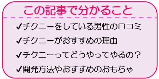 チクニーを知らないなんて非常にもったいないですよ~!この記事を読んで、早速チクニーにトライしてみましょう。