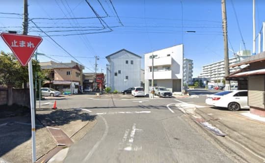 正面に駐車場がある、突き当たりまで進んだら左折します。