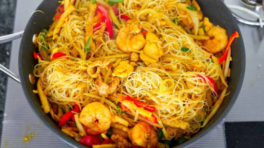 東南アジアではおなじみのラクサ。辛い麺というイメージが強いと思いますが、古くからある場所の麺は、ほどよい辛さで甘味がありました。驚くことに、麺はハサミで切られていて、レンゲを使って食べるのが一般的なんだとか。