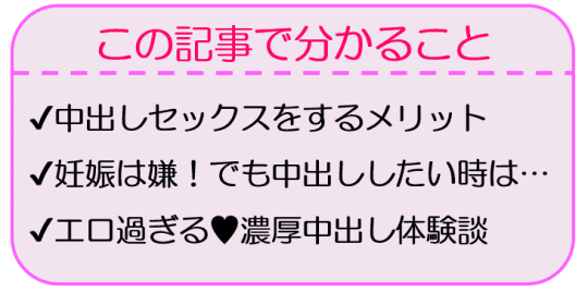 中出しセックスの魅力をお伝えしていますが、夫婦の数だけ事情もでしょうし、さまざまな夫婦の形があると思います。そもそも、中出し=妊娠の可能性が出てきますよね。