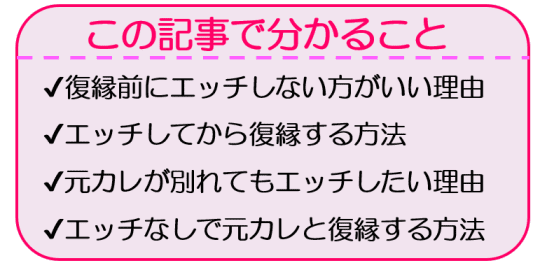 したがって、元カレと復縁したいのであれば、エッチはせずに復縁を狙いましょう。