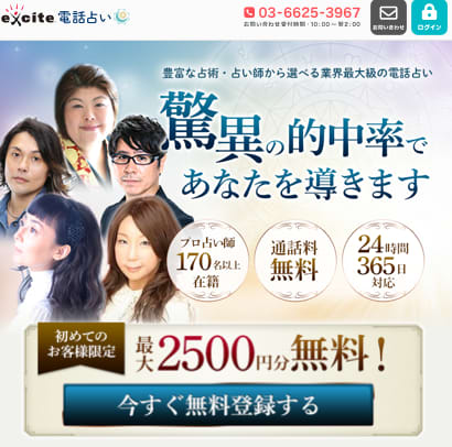 exciteでは、190名を超す占い師達が登録し様々な悩みに対応しいています。