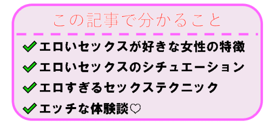 自分を表現するのが好きな女性であったり、クリエイティブで大胆な女性とはエロいセックスができることが多いです。