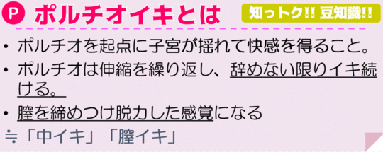 ポルチオとは、子宮口のことを言いマンコの奥にあるコリっとした飛び出ている部分のことです。