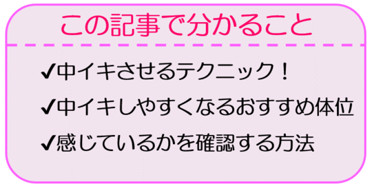 その結果前戯やセックスで中イキしてもらえるようになり、さらにその先にある連続中イキへと導くことが出来るようになります。