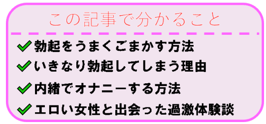 今回は、勃起しやすい体質の僕が、いきなり勃起してしまったときのごまかし方をご紹介します!