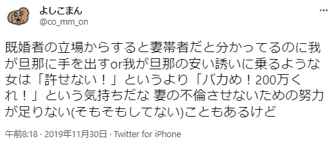 ちなみにその男性は、間もなく「奥さんとの時間を大切にしたくなった」と言う理由で別れました。