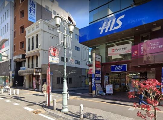 今度は右側にHISがありますので、右折して路地に入ります。