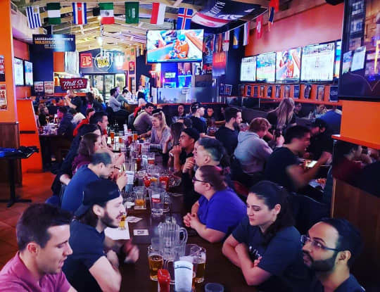 トロントには至る所にバーがあります。上の写真のようなスポーツバーは人気です。特にスポーツイベントがある時はたくさんの人が集まりバーがスポーツ観戦の場となります。トロントではアルコールのラストオーダーは夜中の2時、営業は3時までとなっています。カナダ人のお酒のマナーは比較的良くバーで悪酔いしている人を私は今まで見かけた事がありません。