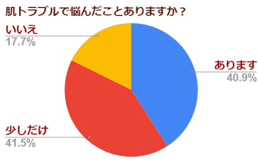 実際に、私みたいに肌トラブルで悩んでいる女性がどれくらいいるのか、また、女性限定で、ニキビができたことがある人がどれくらいいるのか、私、ネットで調べてみました!