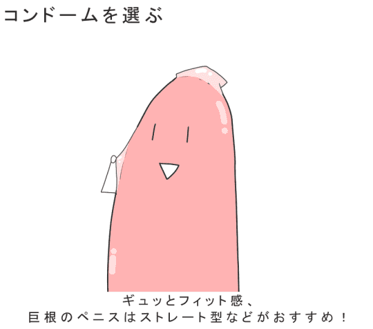 根元から亀頭まで、普通に大きい人にはストレートな形のゴムがおススメ。