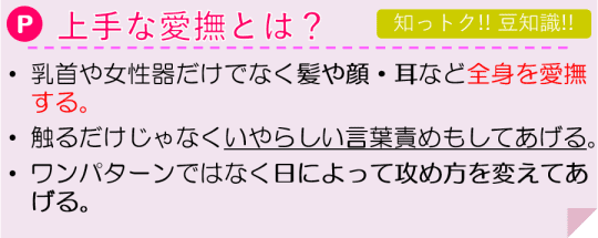 あとは、女性をどれだけ感じさせてくれるか男性の”上手な愛撫”にかかっていると思う。