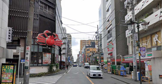 ”旧東海道”を進むと左にかに道楽が見えるので左に曲がりましょう。