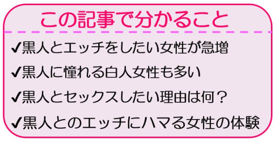 AVの世界では一定の人気がある黒人とのエッチですが、実は現実世界でも黒人とのエッチにハマる女性は少なくないんですよ!