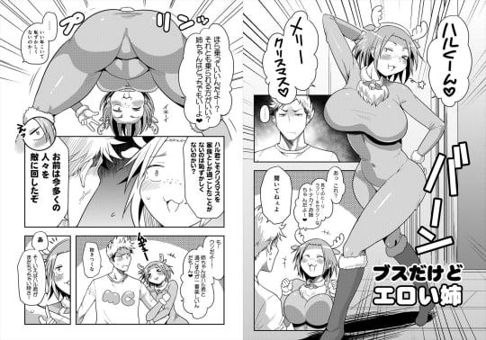 コメディ要素が強いので、あまり過激な性描写は含まれておりませんが、タイトルにもある通り、顔はそこまで可愛くはないものの、肉付きがよく巨乳な姉が、主に弟に対してエロ要素を交えたちょっかいを出していくというものになります。