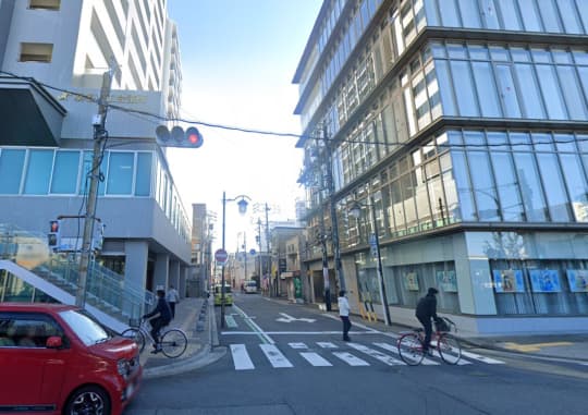 こちらを画像左に渡り、その先の路地を左に入ってください。