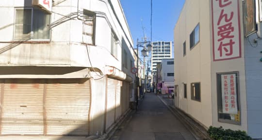 少し歩くと、目的地に入る路地が左側に見えてきます。