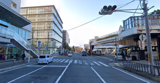 こちらの横断歩道まで来たら、画像左に真っすぐ進んでください。