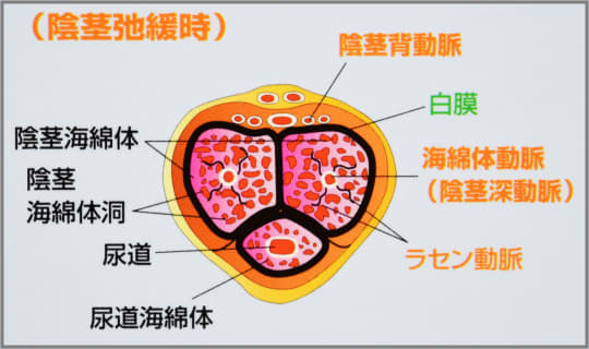 体内では一酸化窒素が放出され血管に血液が流れ込み、血液の圧力によって海綿体が硬くなります。